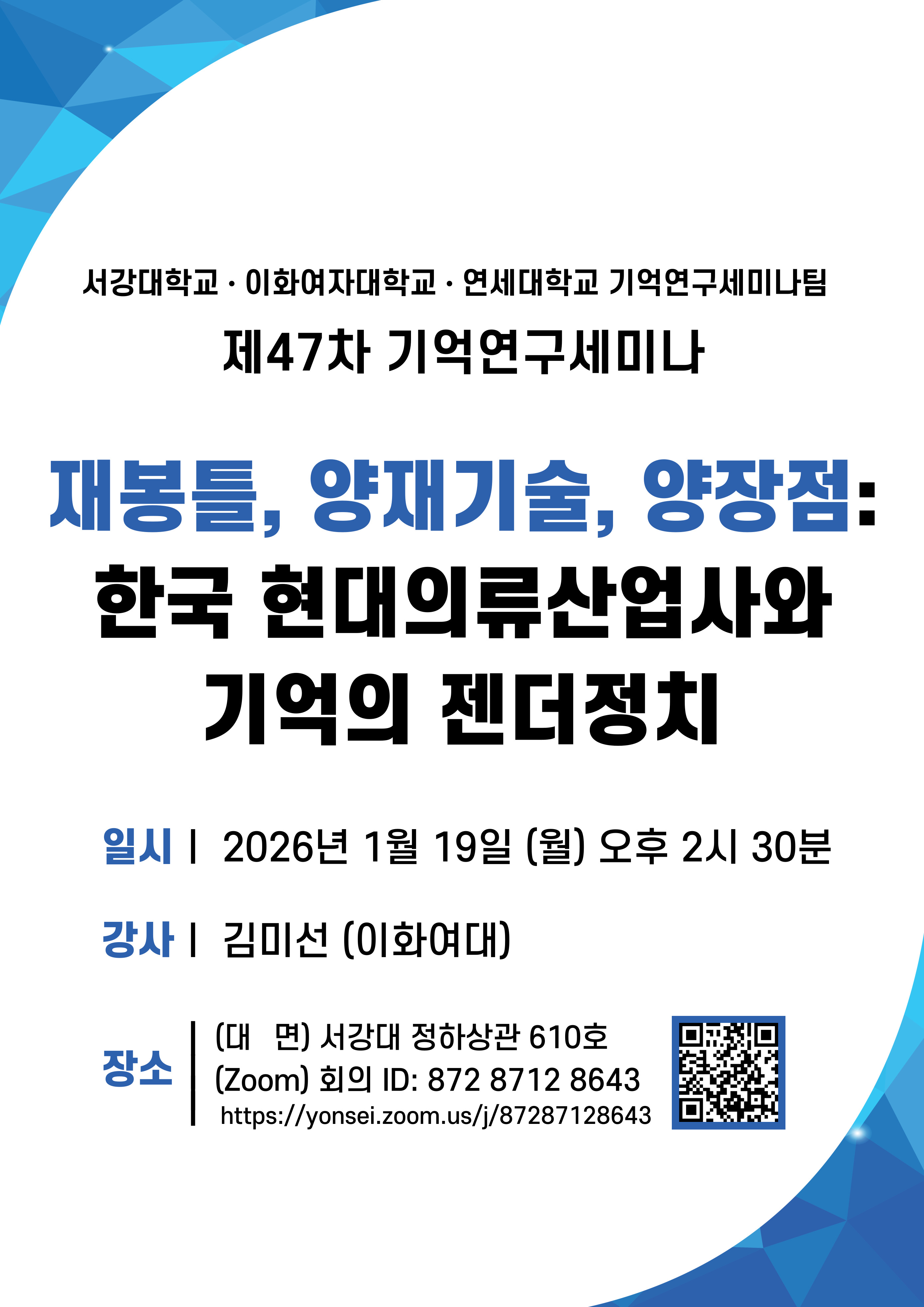 [안내] 이대-서강대-연대 공동 주최 [기억연구세미나] 안내